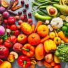 Λαχανικά σε λεπτές φέτες επιλογής σας και φρέσκια ρόκα.